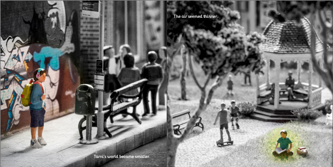 When Tarni’s mum says goodbye, all the colour and joy of life seem to go with her. Tarni retreats into her bubble.